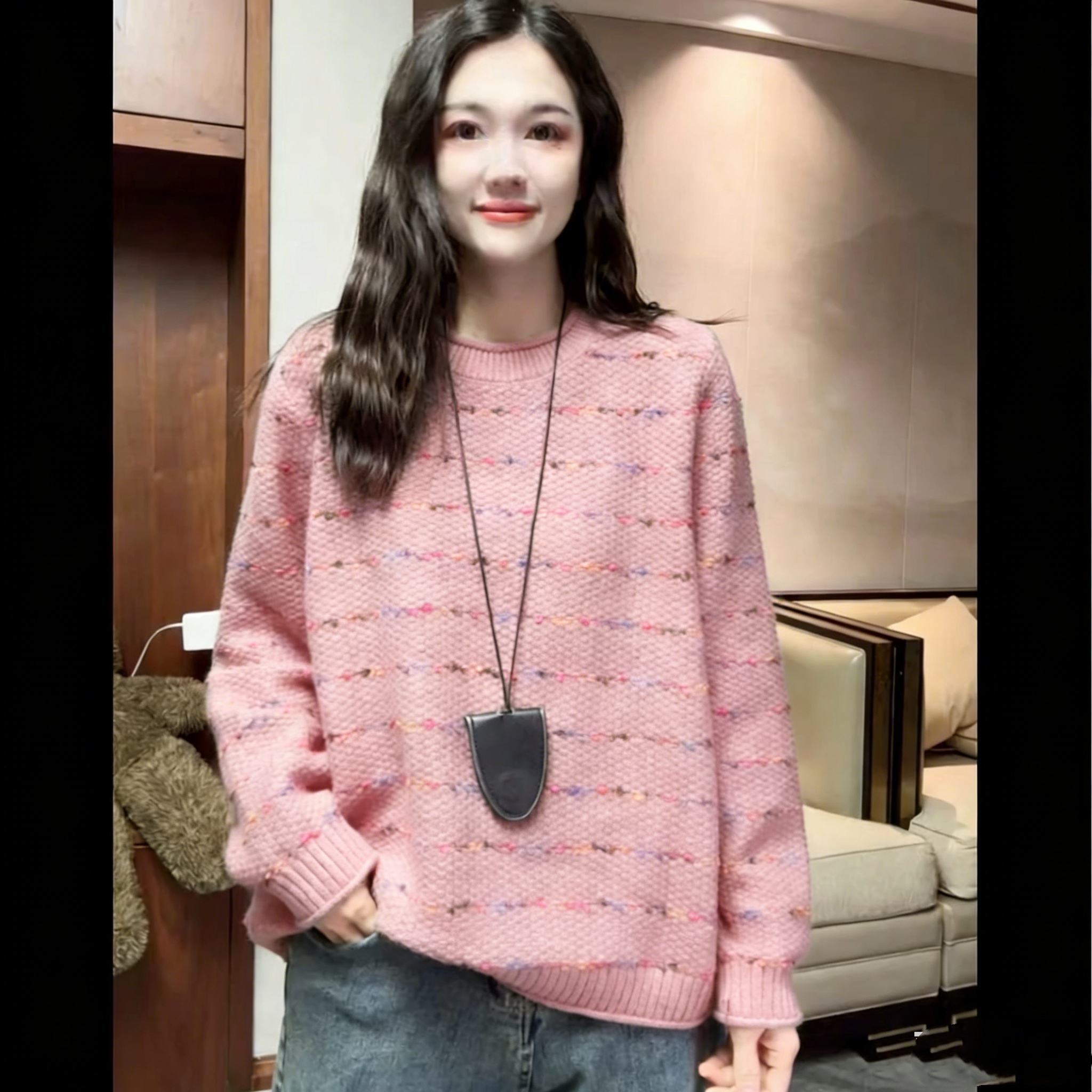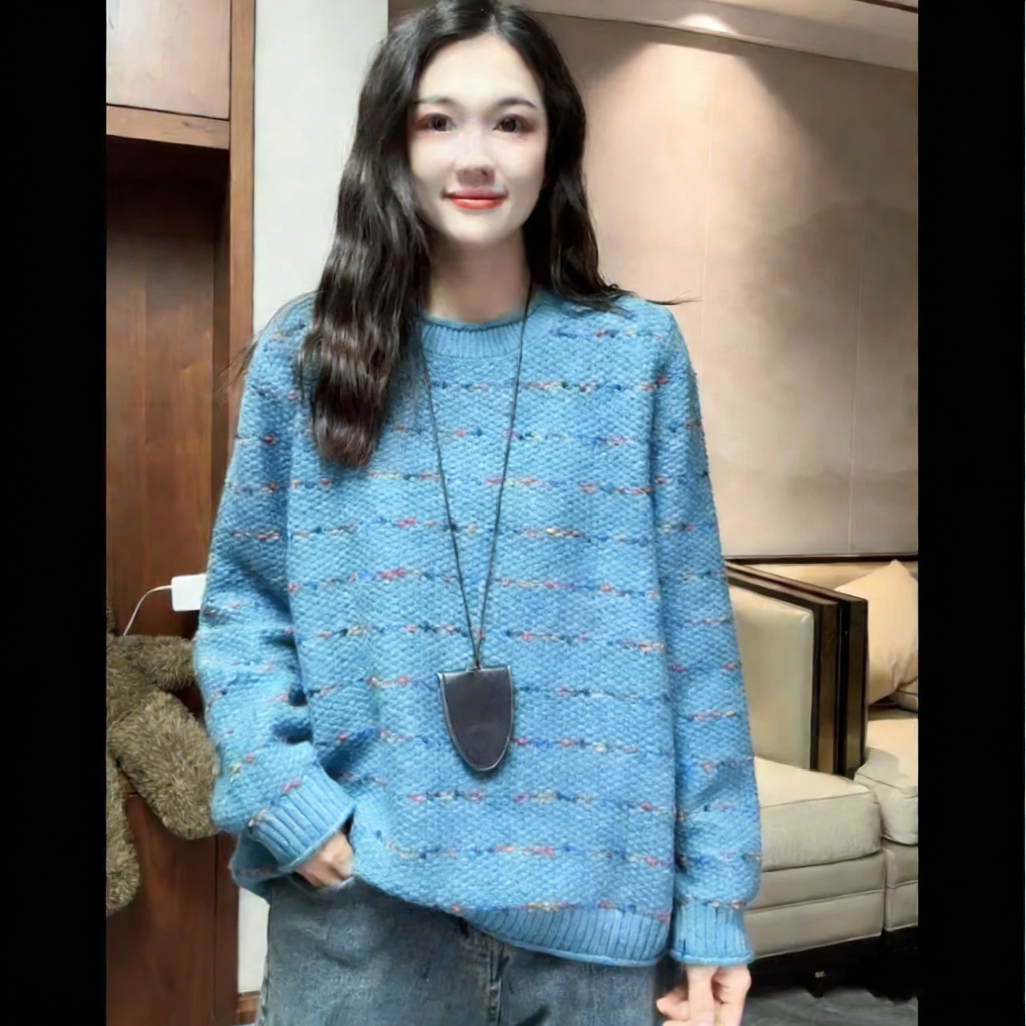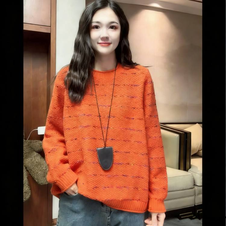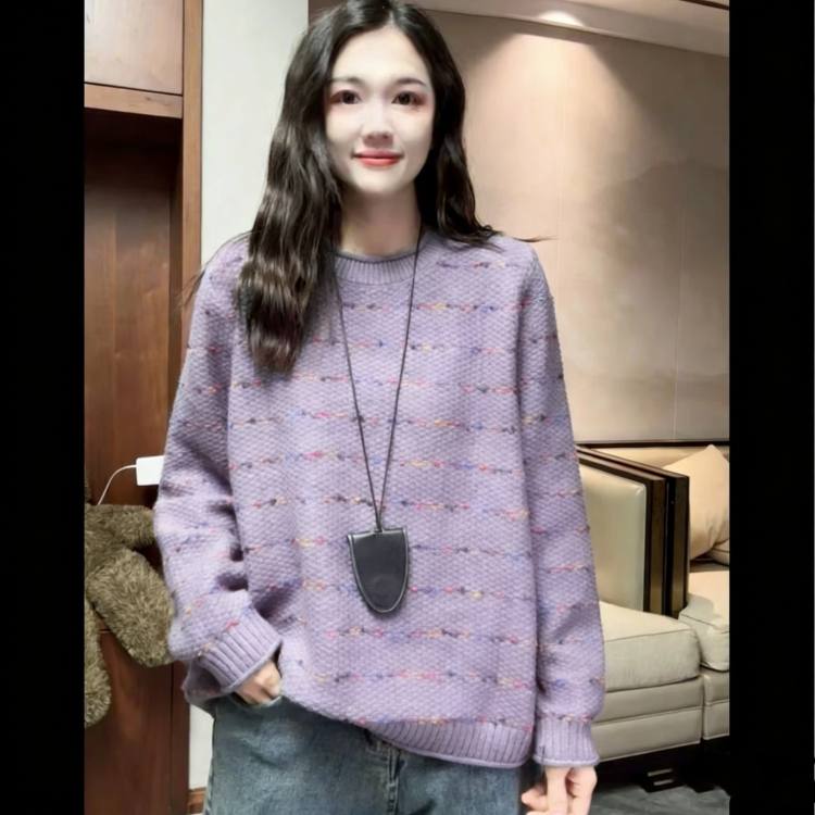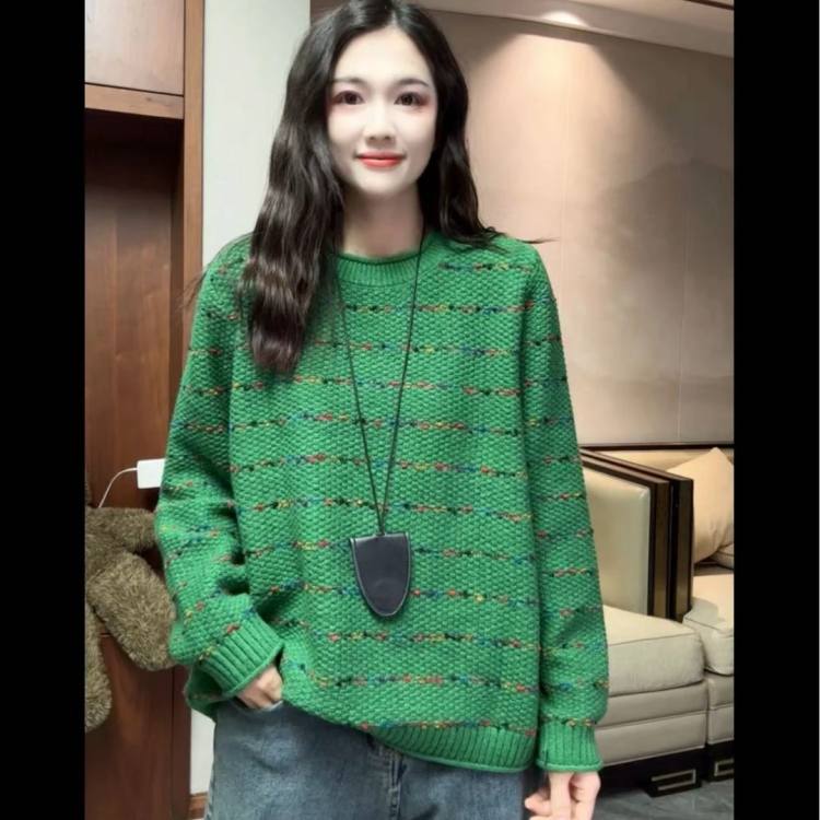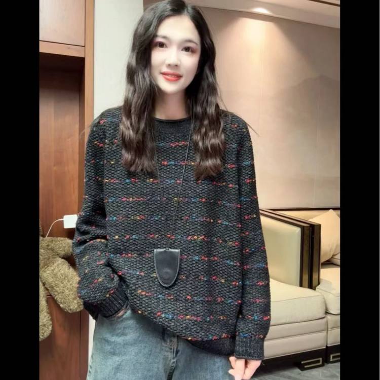2026秋冬棉線圓領拼色時尚洋氣顯瘦大碼厚款針織衫