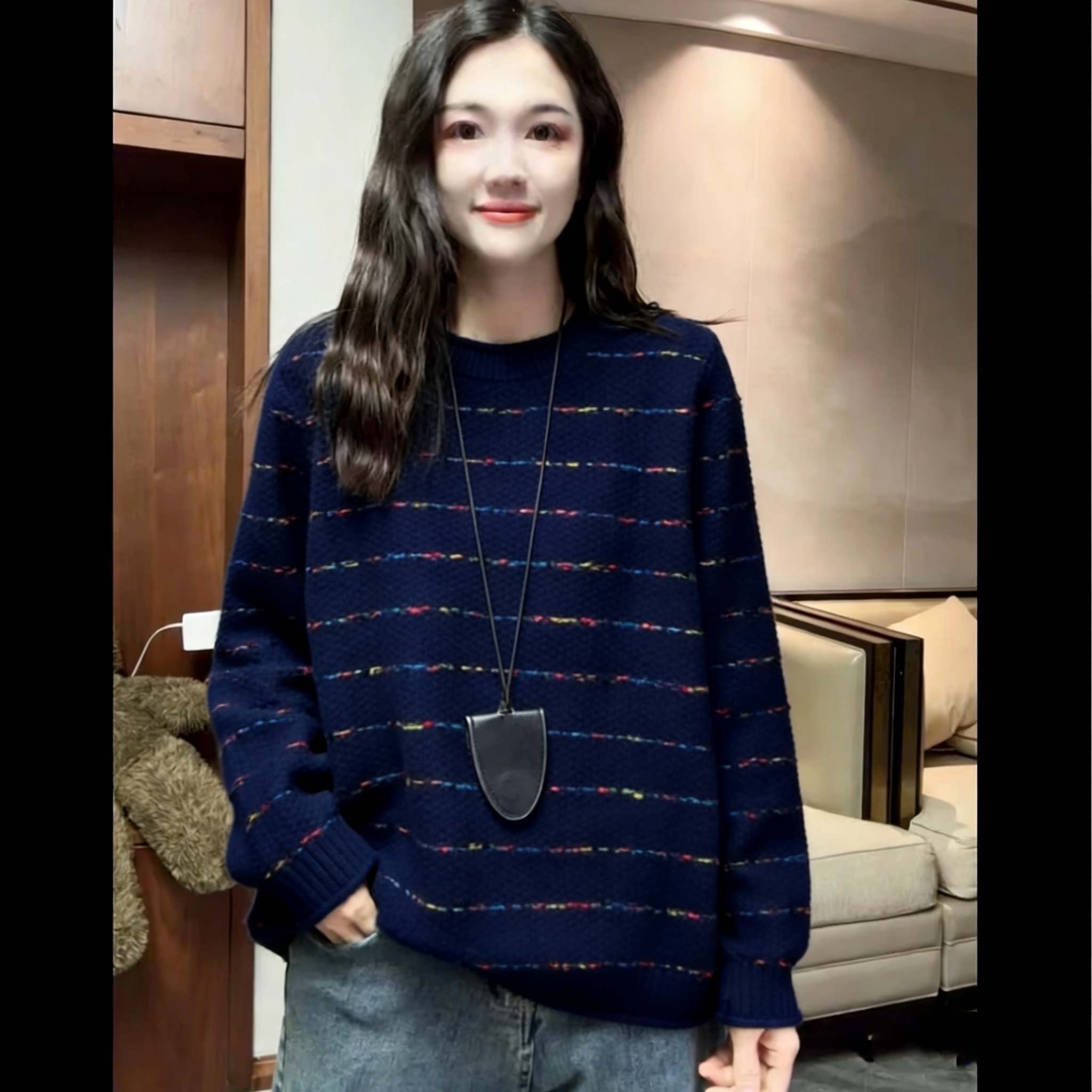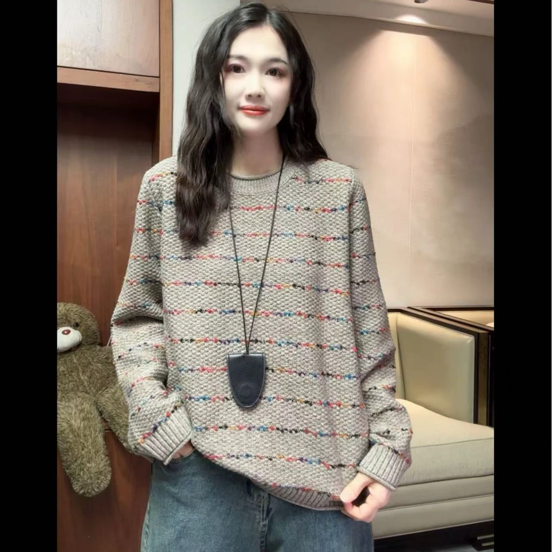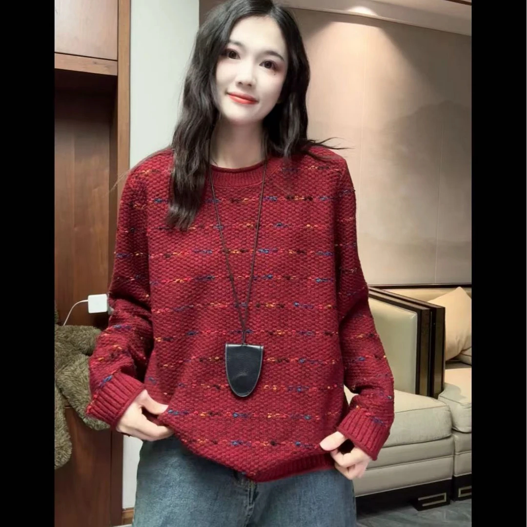 2026秋冬棉線圓領拼色時尚洋氣顯瘦大碼厚款針織衫